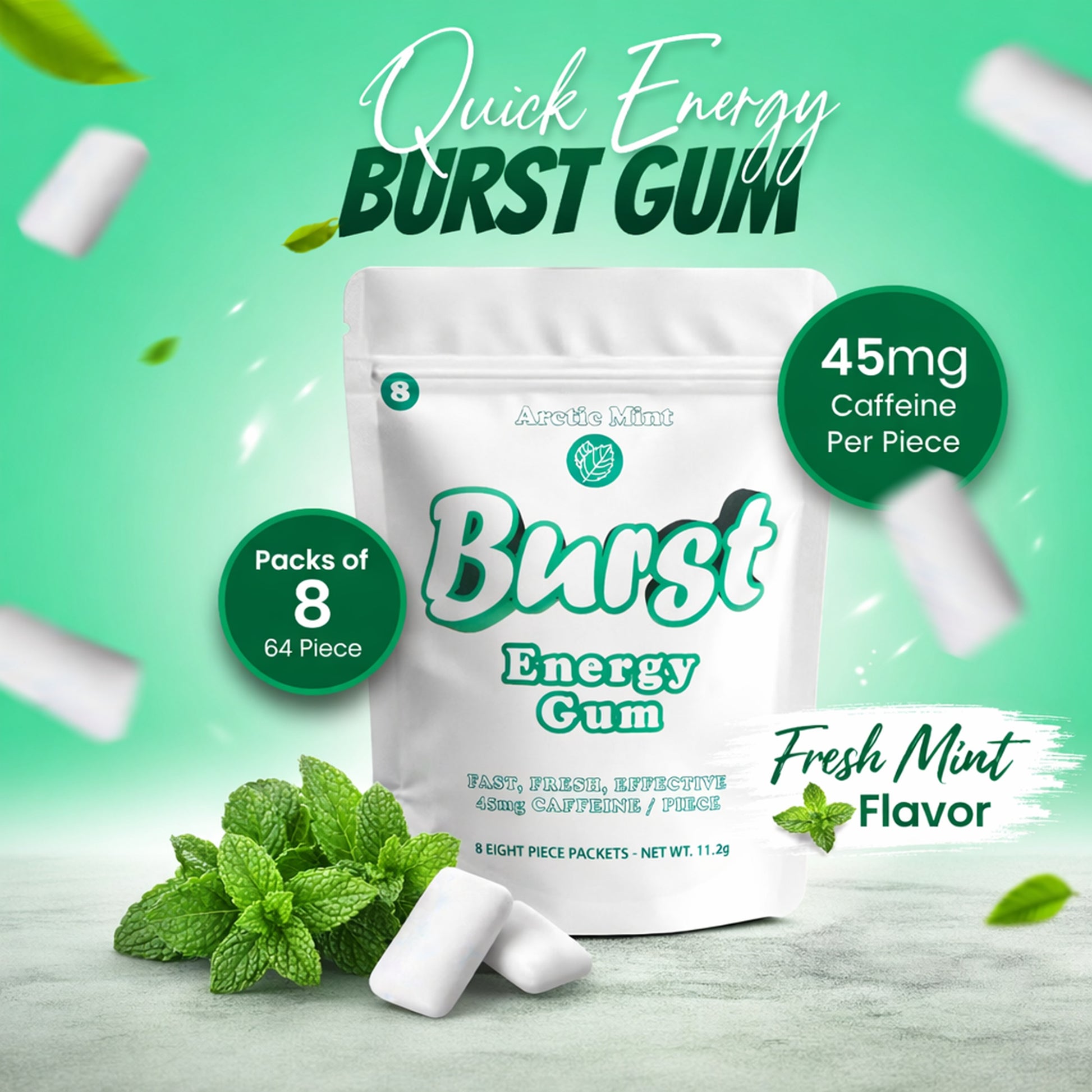 Get reliable energy for everyday tasks with Burst Energy Gum. Our fast-acting formula provides energy five times faster than energy drinks, without the bloating. Our USA-made Arctic Mint flavor delivers long-lasting freshness. Conveniently packaged for on-the-go use, it's the perfect alternative to coffee and energy drinks.